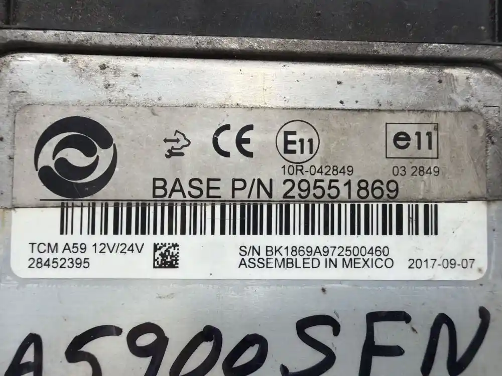 (Used) 2017 Allison 2200HS, TRANSMISSION ECM- Part Number: 29551869, Serial Number: BK1869A97250040, TCM Model: A59, E11 10R-042849, 03 2849 12V\24V A5900SFN, 1 Rectangular Plug with 80 Pins, Reference images for condition,