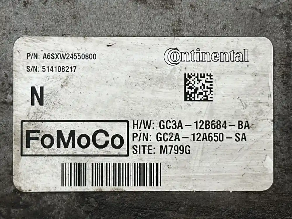 (Used) 2017 Ford 6.8L V-10, ENGINE ECM- Part Number: A6SXW24550800, Serial Number: 514108217, HW: GC3A-12B684-BA, P/N: GC2A-12A650-SA, SITE: M799G, 1 Plug with 103 Pins, 1 Plug with 95 Pins, Reference images for condition. ,