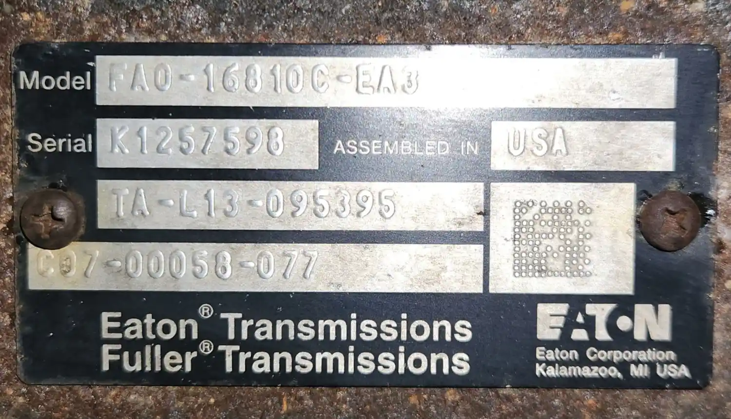 (Used) 2018 Eaton/Fuller (AT), TRANSMISSION ASSEMBLY- Model: FAO-16810C-EA3, Serial Number: K1257598, Part Number: TA-L13-095395, Engine: Cummins L9 370,