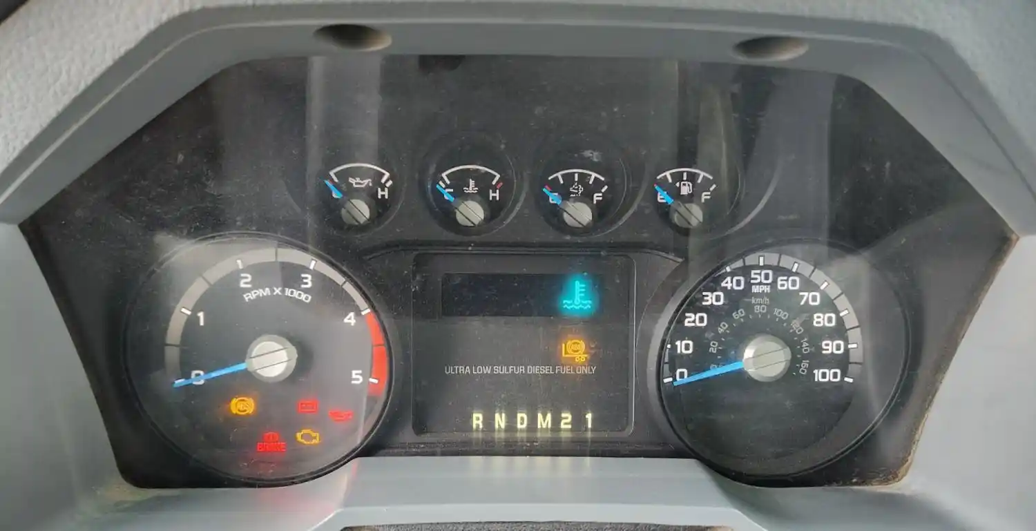 (Used) 2018 Ford F-750, INSTRUMENT CLUSTER- Gauges: Engine Oil Pressure, Water Temperature, Def Level, Fuel Level, RPM, MPH, Material: Plastic, Reference images for condition,