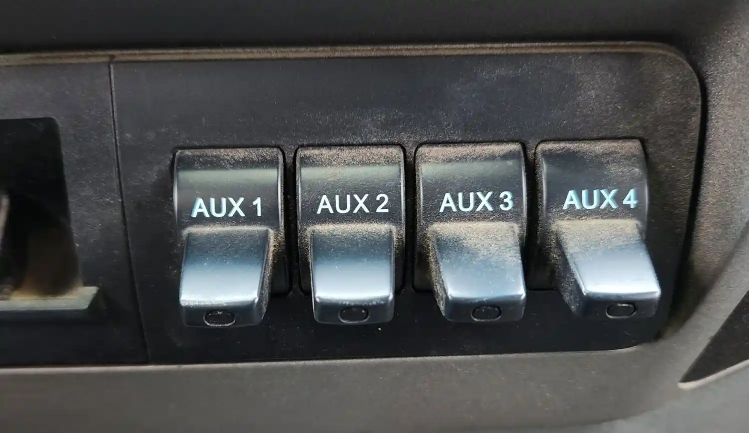 (Used) 2018 Ford F-750, MISCELLANEOUS DASH SWITCHES- Controls: Aux 1, Aux 2, Aux 3, Aux 4, Material: Plastic,