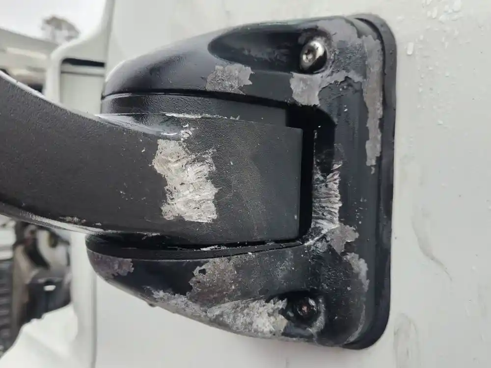 (Used) 2018 Freightliner Cascadia 125, SIDE VIEW MIRROR- Side: Driver Left Side, Color: Black, Type: Power Heat Mirror, Mounts: Door, Minor Damage!! Reference images for condition,