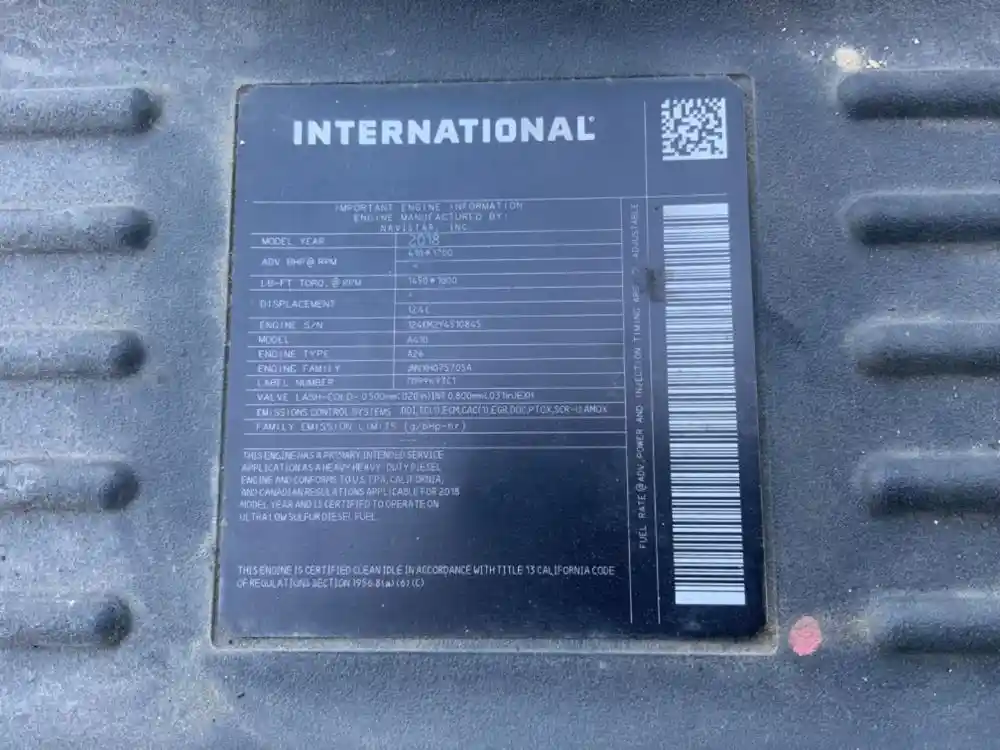 (Used) 2018 International A26 ENGINE ASSEMBLY- Family Number: JNVXH07570SA, Displacement: 12.4, Horsepower: 410, Serial Number: 124KM2Y4510845, E.C.S.: DDI,TC(1),EGR,DOC,PTOX,SCR-U,AMOX, ,