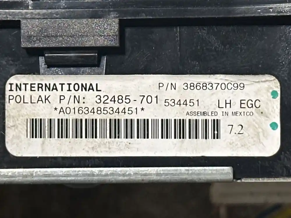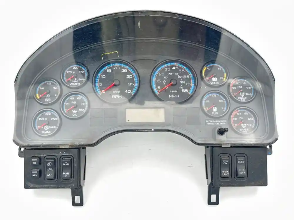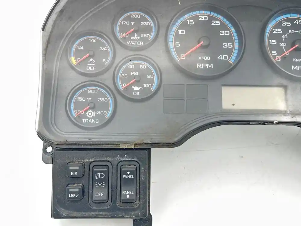 (Used) 2018 International DuraStar 4300, INSTRUMENT CLUSTER- Part Number: 3868370C99, Gauges: DEF Level, TRANS Fluid Temp, WATER Temp, OIL Pressure, RPM, MPH, Battery Volts, FUEL Level, (1) BRAKE AIR PRESSURE, (2) BRAKE AIR PRESSURE, Switches: MIR, LMP, Fog Lights, PANEL, ON / WORK LIGHT, DISAB / 6TH GEAR, Reference images for condition. ,