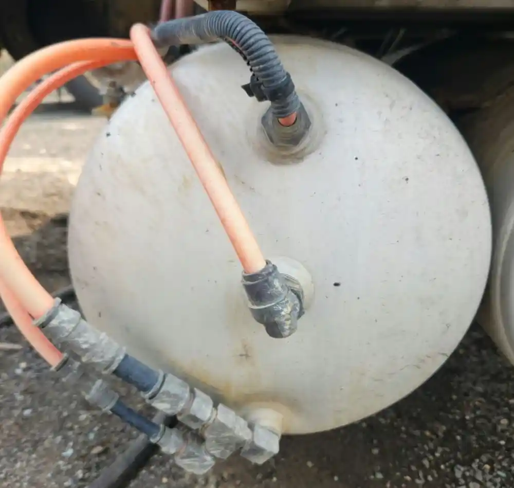 (Used) 2018 International HX620, AIR TANK- Side: Passenger Right Side, Location: Bottom, Material: Aluminum, Dimensions: L=31", D=12", Front Ports: 3, Rear Ports: 8,