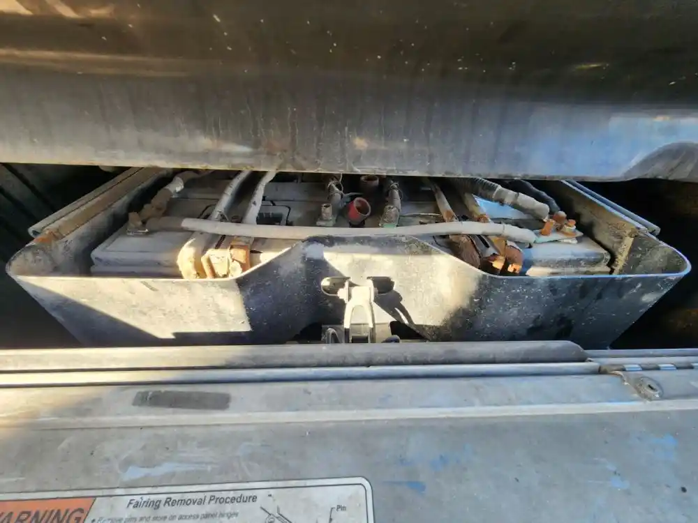 (Used) 2019 Freightliner Cascadia 113, BATTERY BOX- Side: Driver Left Side, Capacity: 4 Batteries, Material: Steel, Dimensions: L=27.5", W=20",