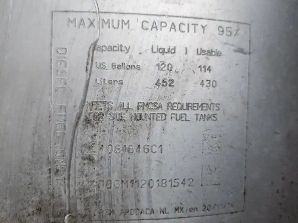 (Used) 2019 International LT625, FUEL TANK- Part Number: 4061646C1 Side: Driver Left Side, Capacity: 120 Gallons, Material: Aluminum, Shape: Cylinder, Dimensions: L=54.5", D=26", Minor Damage!! Reference images for condition,