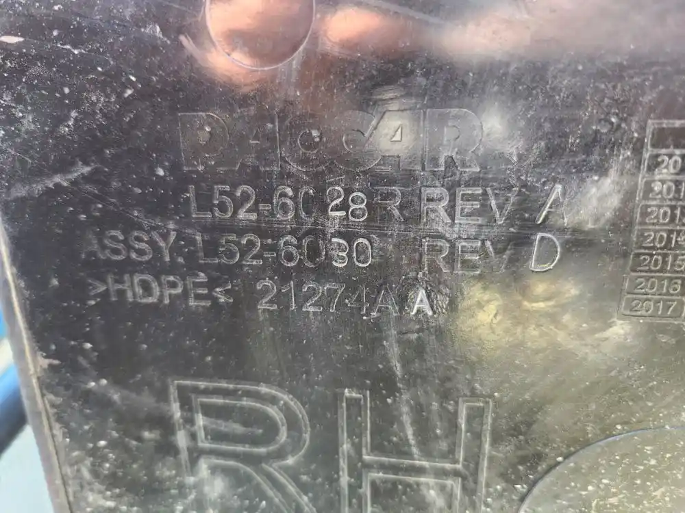 (Used) 2019 Kenworth T680, FENDER LINER HOOD- Part Number: L52-6030, Side: Passenger Right Side, Location: Hood, Color: Black, Material: Plastic, Reference images for condition,