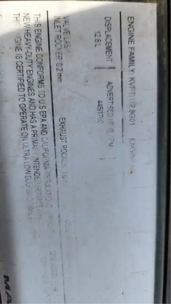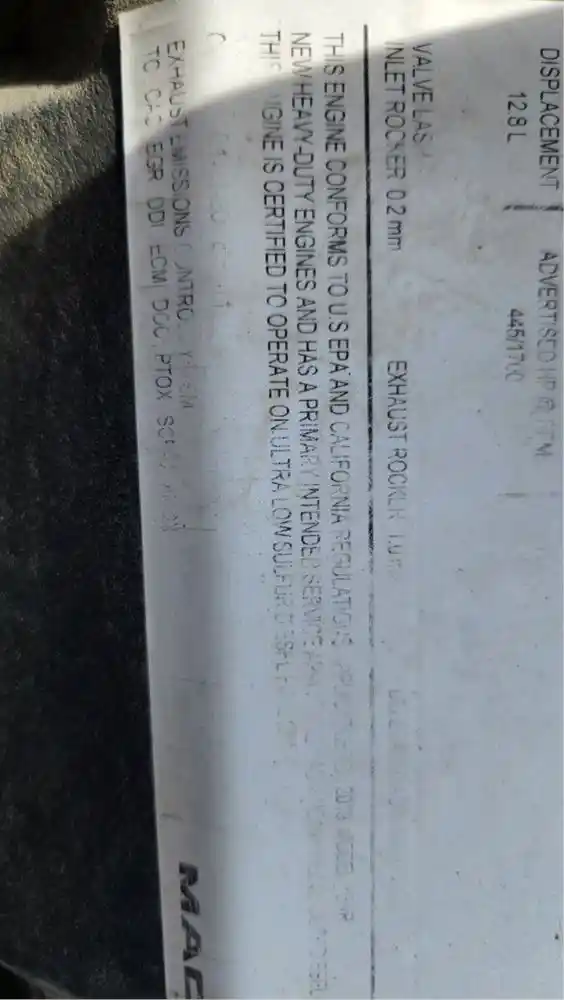 (Used) 2019 Mack MP8, ENGINE ASSEMBLY- Family Number: KVPTH12.8G01, Displacement: 12.8L, Horsepower: 445, Serial Number: TBD, Part Number: TBD, E.C.S.: TC, CAC, EGR, DDI, ECM, DOC, PTOX, SCR-U, AMOX,