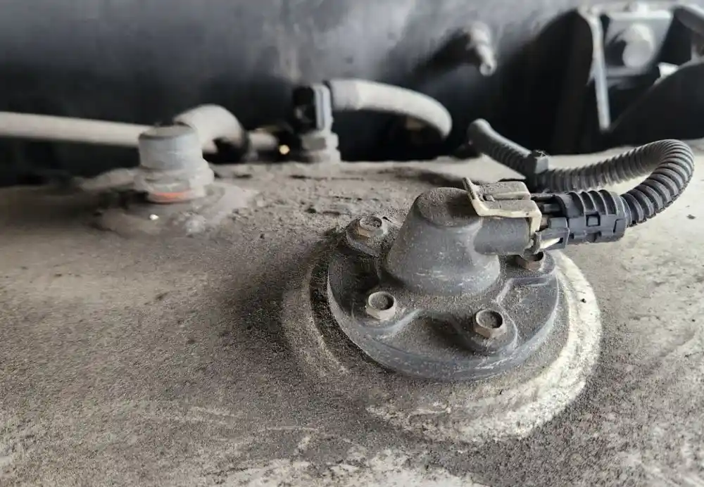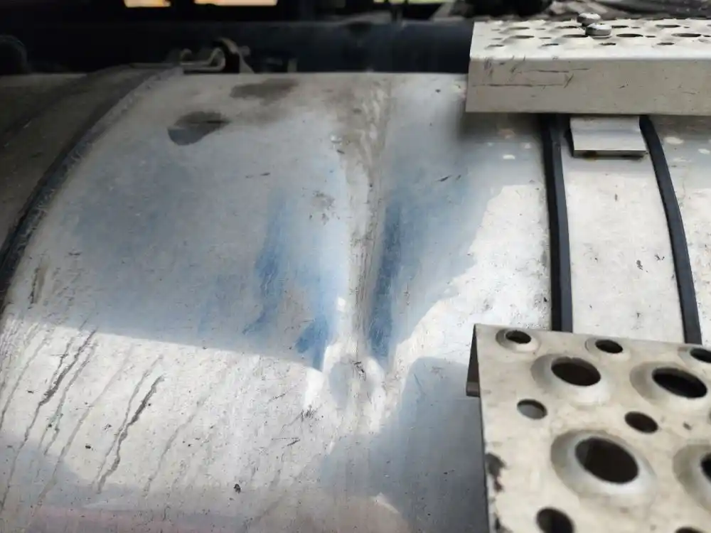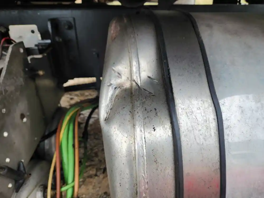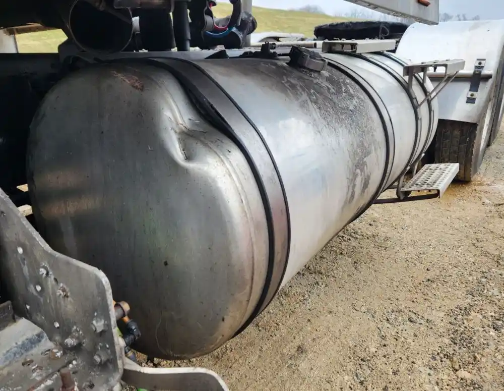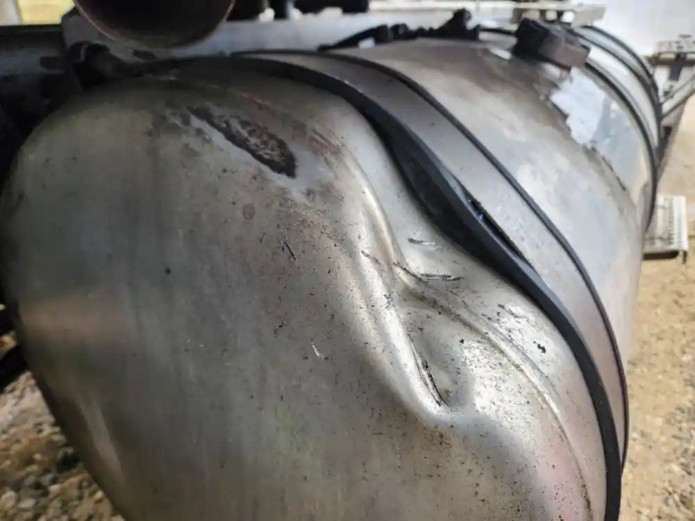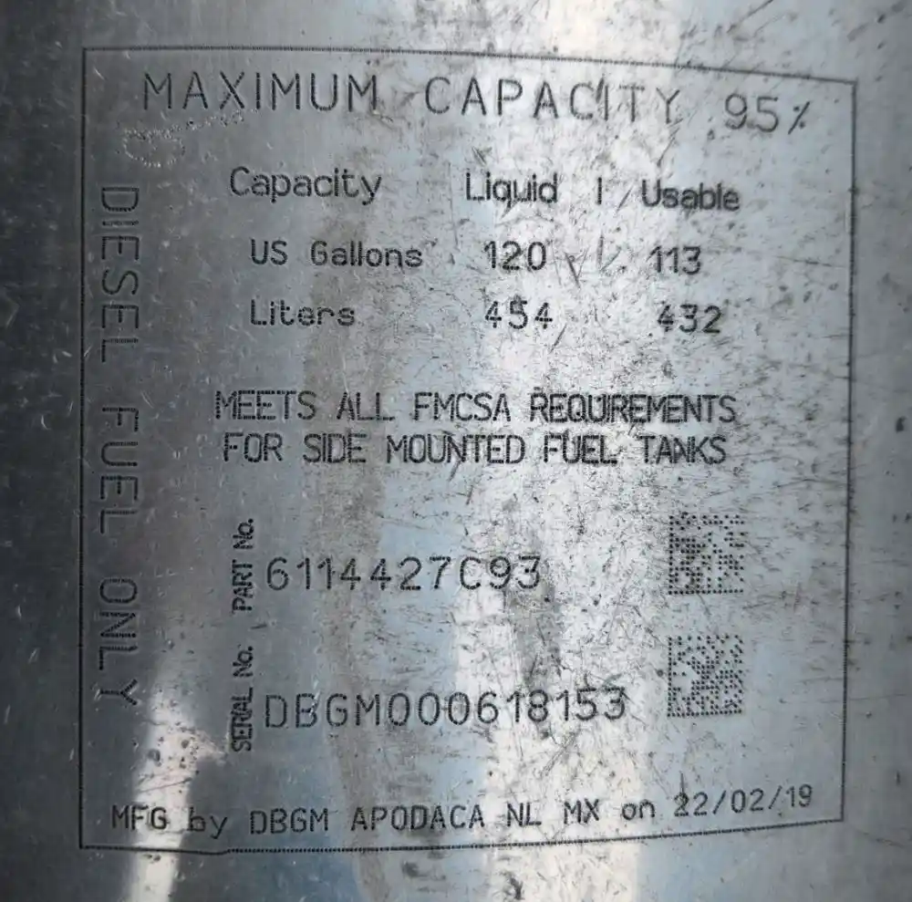 (Used) 2020 International HX520, FUEL TANK- Part Number: 6114427C93, Serial Number: DBGM000618153, Side: Driver Left Side, Capacity: 120 Gallons, Material: Aluminum, Shape: Round, Dimensions: L=65 ½", D=24", It's Dented, Damage Reference images for condition,