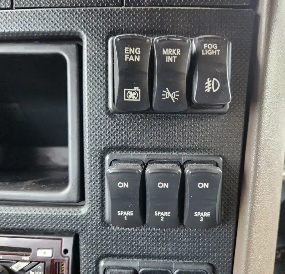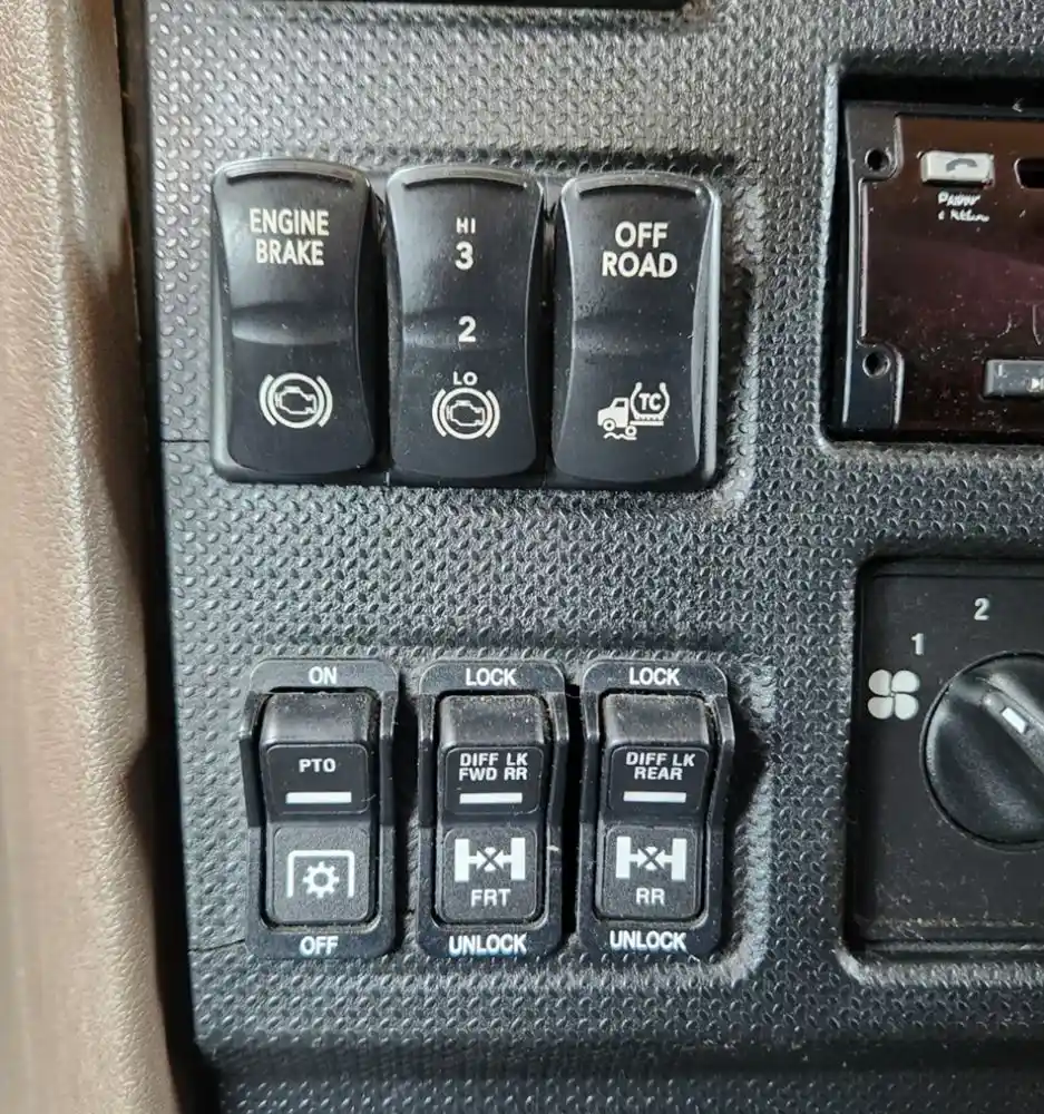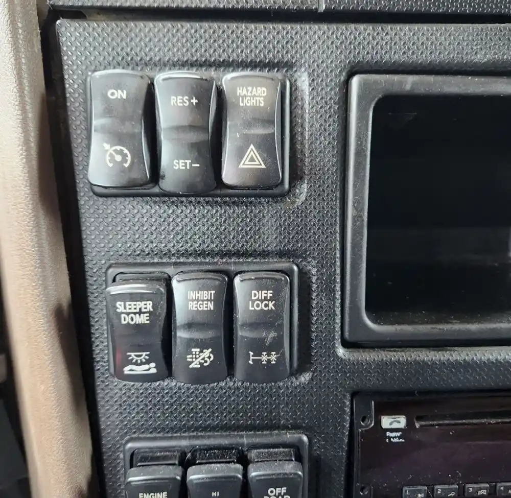 (Used) 2020 International HX520, MISCELLANEOUS DASH SWITCHES- Controls: Cruise On, Res-Set, Hazard Lights, Sleeper Dome, Inhibt Regen, Diff Lock, Engine Brake, Hi-Lo, Off Road, PTO, Diff Lock Fwd RR, Diff Lock Rear, Engine Fan, Marker Inter, Fog Light, Spare 1-2-3-4, Inter Axle Diff Lock, Fifth Wheel Slide, Susp Hgt, Material: Plastic, Reference images for condition,