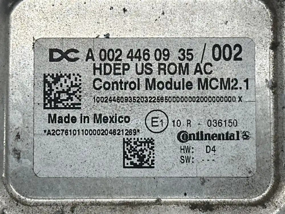 (Used) 2021 Detroit DD15, ENGINE ECM- Part Number: A024460935, Serial Number: HDE0822536 94, A 002 446 09 35 / 002, 100244609352032256500000002000000000 X, A2C7610110000204621269, E1 10 R 036150, HW: D4, SW: ---, 1 Rectangular Plug with 120 Pins, 1 Rectangular Plug with 21 Pins, Reference images for condition. ,