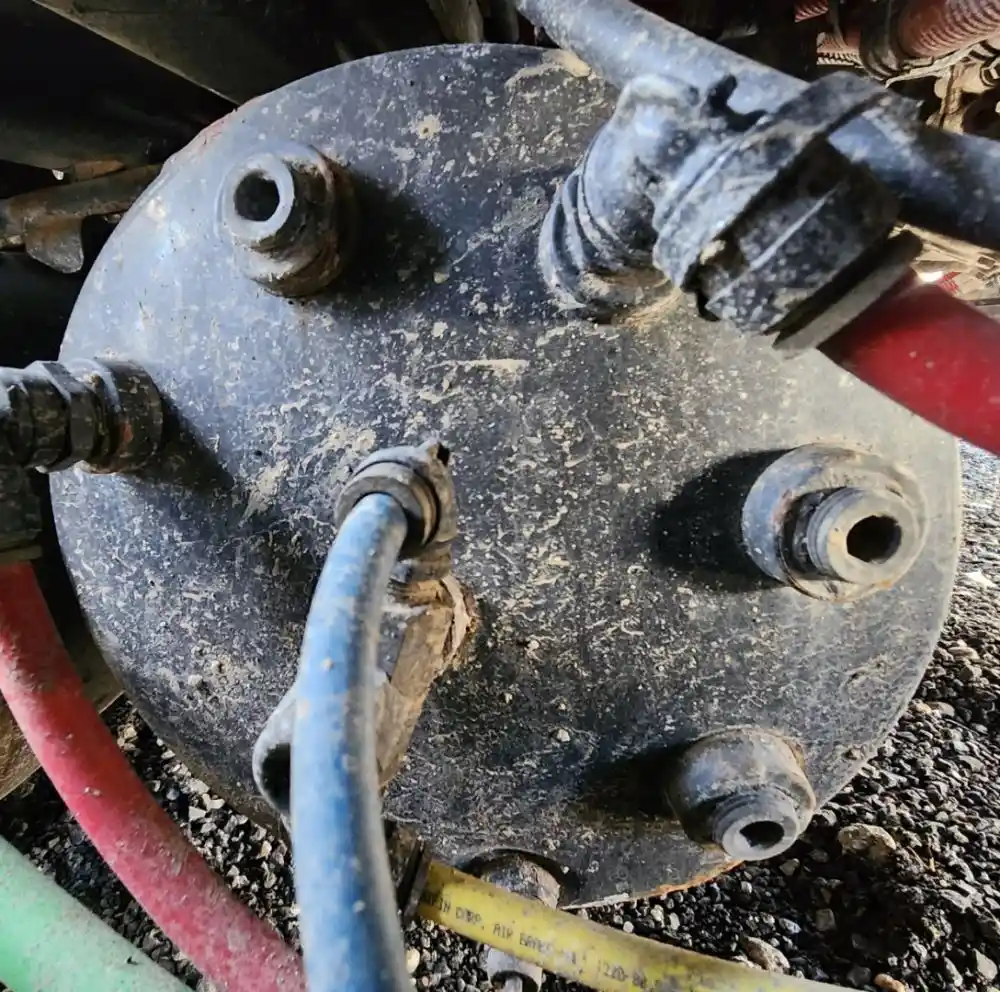 (Used) 2021 Freightliner Cascadia 126, AIR TANK (1)- Side: Driver Left Side, Location: Under The Battery Box, Material: Steel, Dimensions: L=33", D=11", Front Ports: 2, Rear Ports: 3, Reference images for condition,