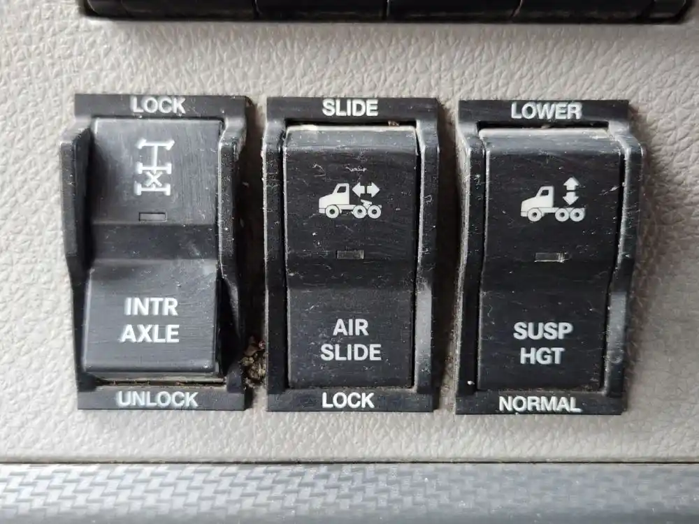 (Used) 2021 Freightliner Cascadia 126, MISCELLANEOUS DASH SWITCHES- Controls: Diff Lock, Air Slide, Susp Hgt, Reference images for condition,