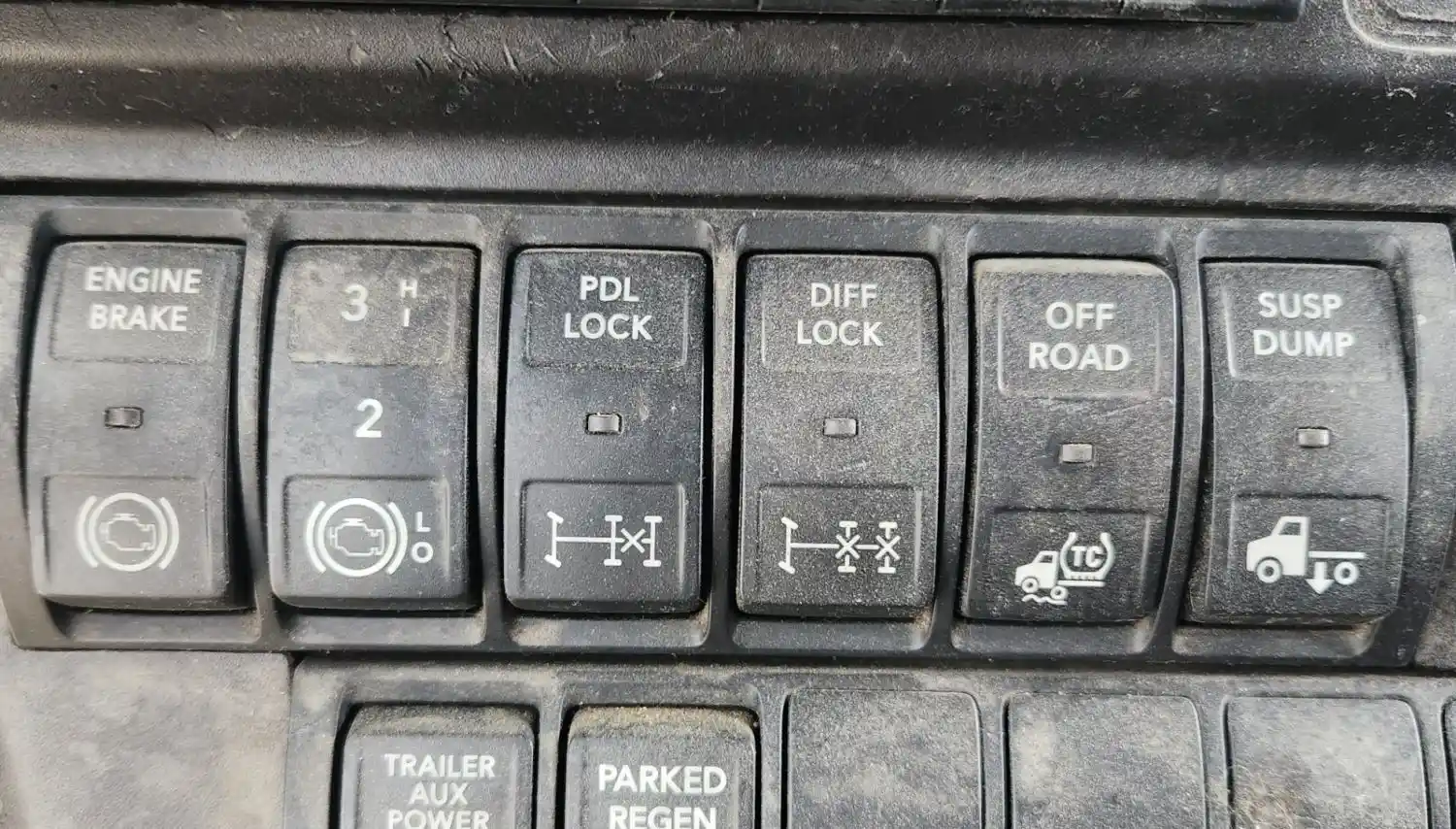 (Used) 2021 International LT625, MISCELLANEOUS DASH SWITCHES- Controls: Engine Brake, PDL lock, Dff lock, Off Road, Susp Dump, Material: Plastic,