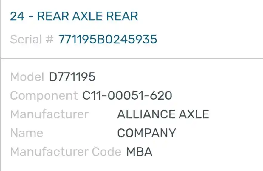 (Used) 2022 Freightliner Cascadia 126, COMPLETE REAR REAR TANDEM- Part Number: C11-00051-620, Serial Number: 771195B0245935, Make: Detroit, Model: DA-RT-40.0-4S, Ratio: 2.85, Capacity: 20,000 Lbs, Hub Bolts: 10, Brake Type: Drum, Suspension: Air Suspension, Reference images for condition,