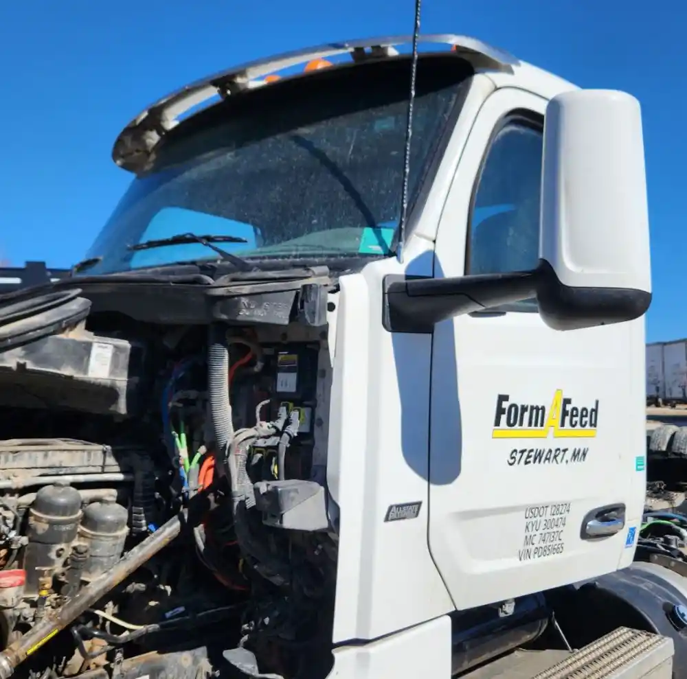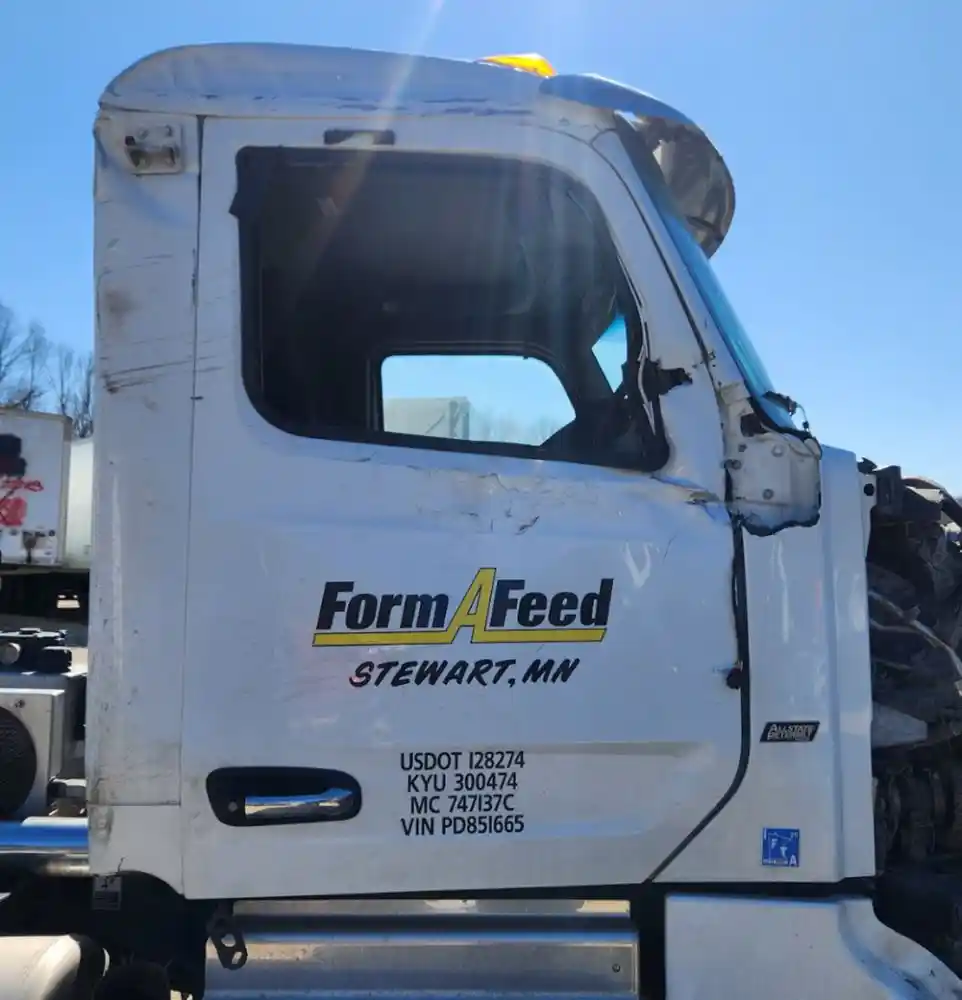 (Used) 2023 Peterbilt 567, CAB- Type: Day Cab, Engine: PACCAR MX13, Color: White, Less Interior, Less Doors Sold Separately, It's Dented, Damage Reference images for condition,