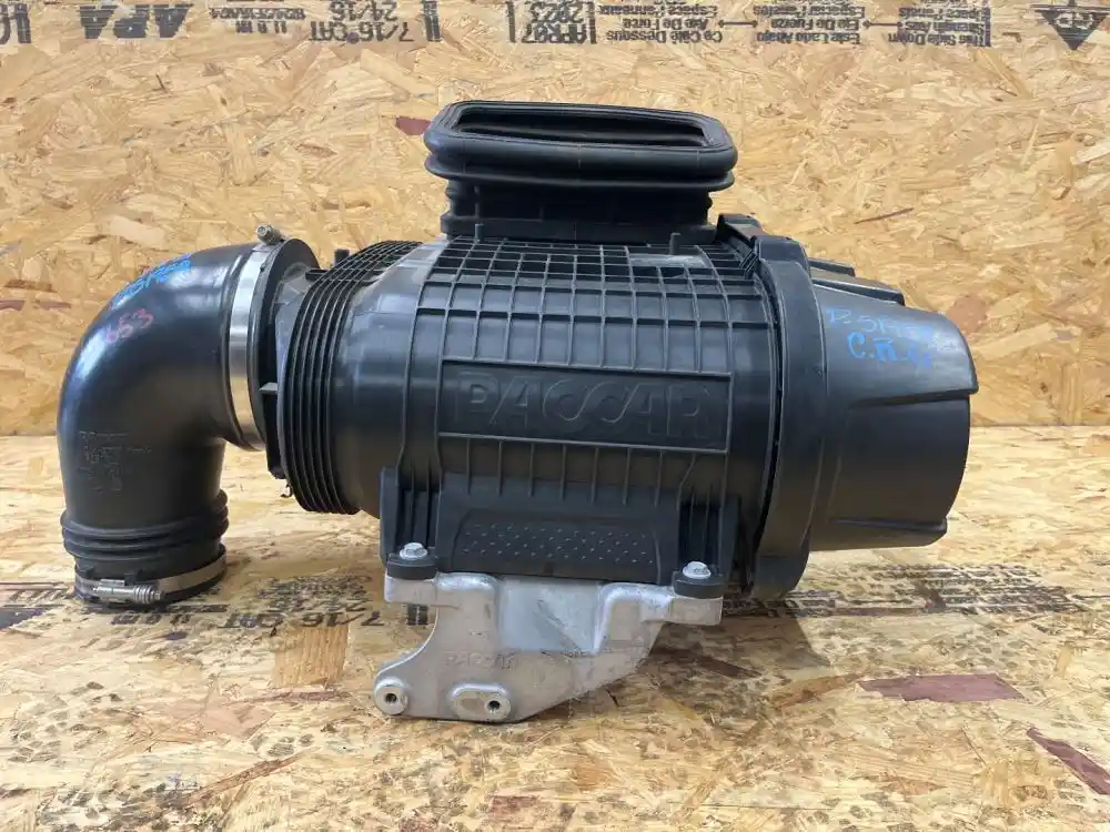 (Used) 2023 Peterbilt 579, AIR CLEANER- Side: Universal (on top) Color: Black Material: Plastic Shape: Rectangular Engine: PACCAR MX13 Part Number: A059W493 Dimensions: L=23”, W=20”, H=10”.