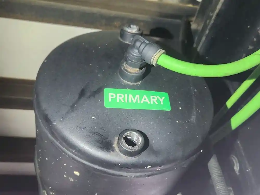 (Used) 2024 Freightliner M2 106, AIR TANK- Side: Passenger Right Side, Location: Inside Frame, Material: Steel, Dimensions: L=26.5", D=9", Front Ports: 2, Side Ports: 0, Rear Ports: 3, Reference images for condition,