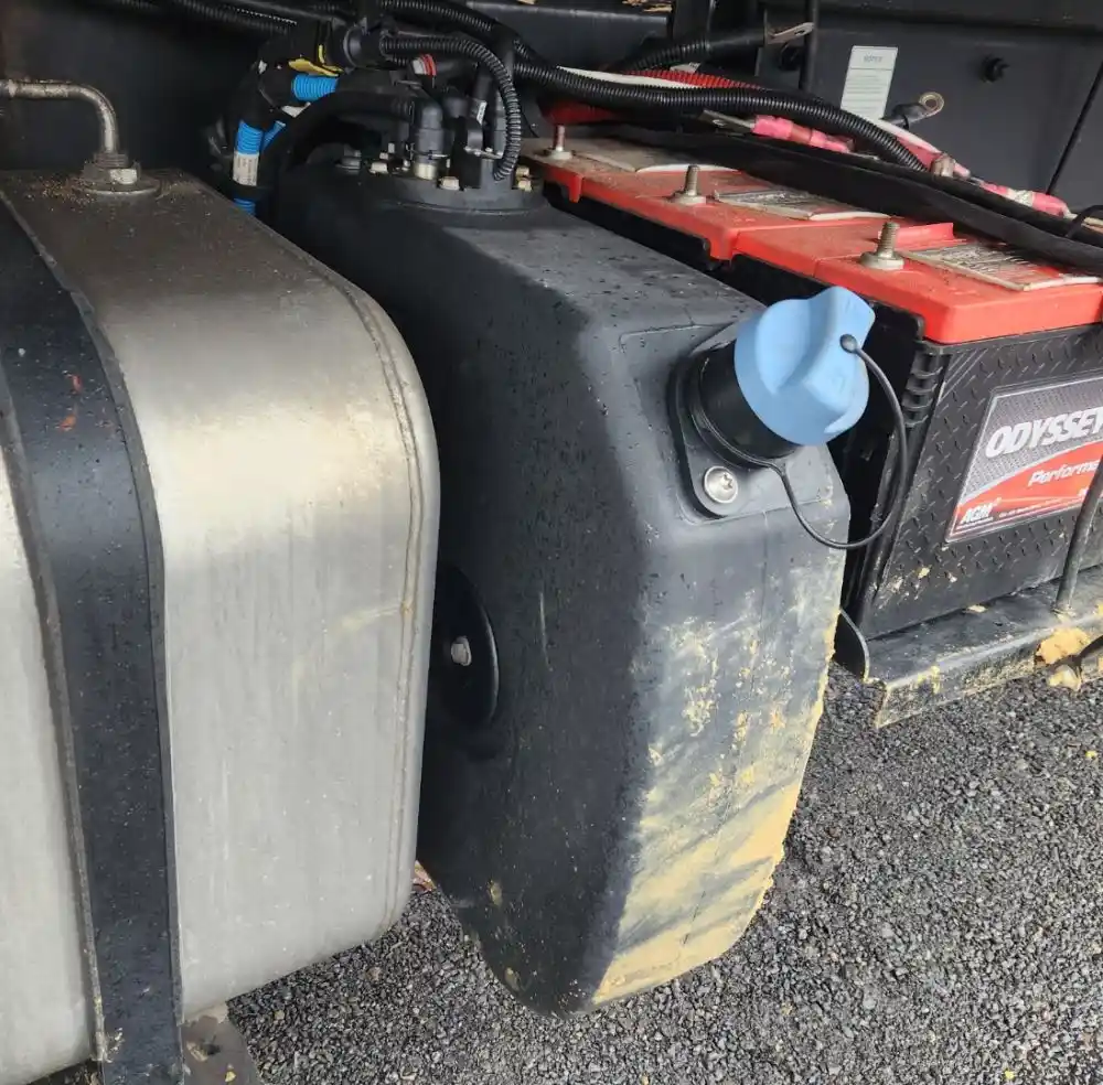 (Used) 2024 Freightliner M2 106, DEF TANK- Side: Driver Left Side, Material: Plastic, Color: Black, Shape: Rectangular, Reference images for condition,
