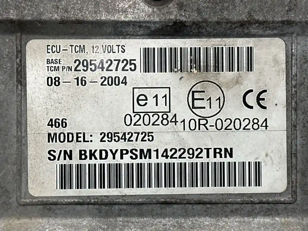(Used) Allison 1000, TRANSMISSION ECM- Part Number: 29542725, Serial Number: BKDYPSM142292TRN, ECU-TCM, 12V, E 11 020284, 10R-020284, 2 Rectangular Plug with 32 Pins each, Reference images for condition. ,