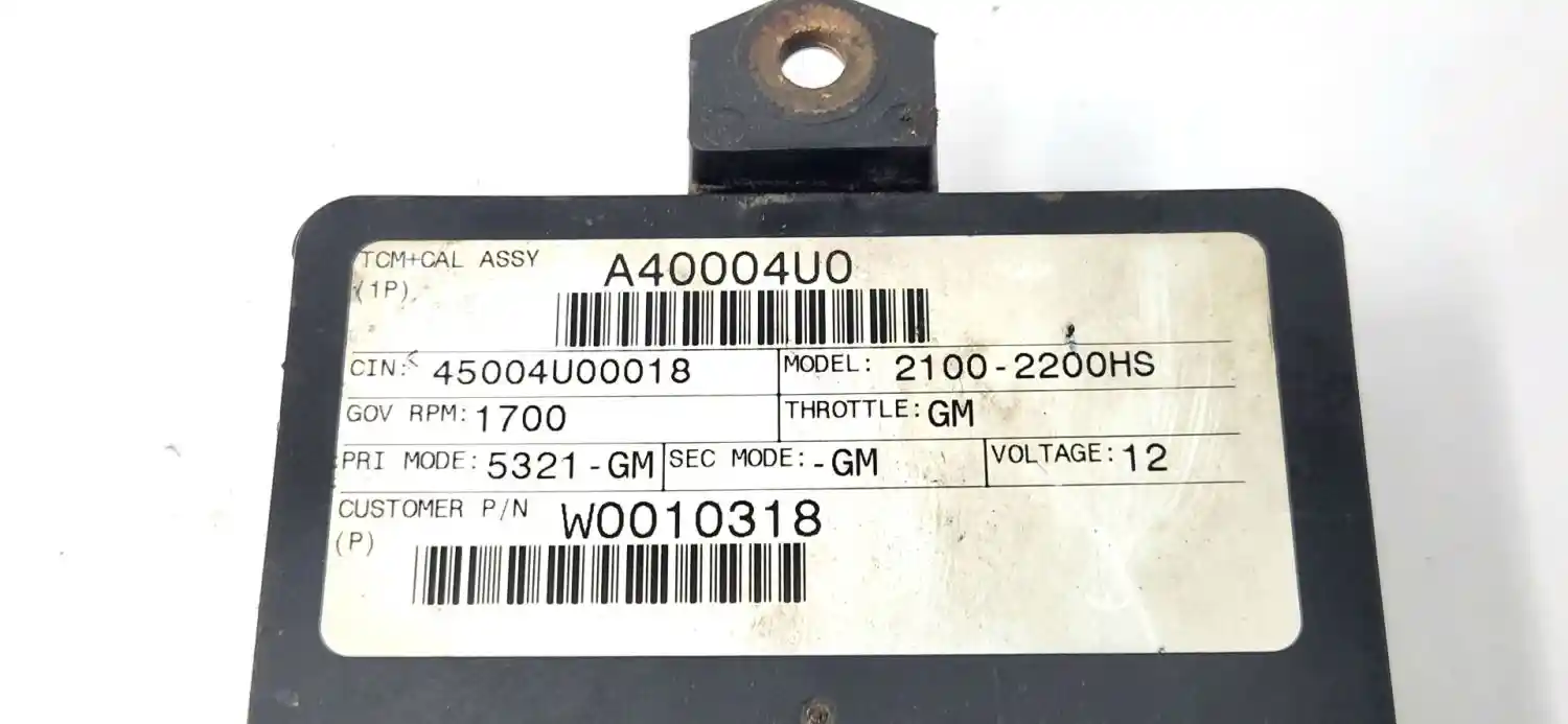 (Used) Allison, TRANSMISSION ECM- Model: 2200HS, Part Number: A40004U0, Serial Number: BK5321N072021AX3, CIN Number: 45004U00018, GOV RPM: 1700, Pri Mode: 5321-Gm, Customer Number: W0010318, ,