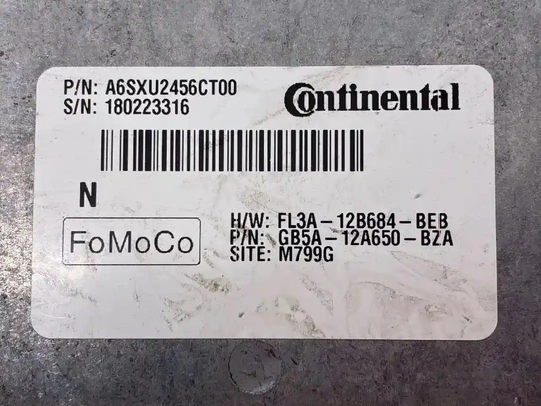 (Used) Engine Parts, ECM- Part Number: A6SXU2456CT00, Serial Number: 394417916, H/W: FL3A-12B684-BEB, P/N: GB5A-12A650-BZA, SITE: M799G, 2 Rectangular Plugs 187 Pins in total, 1: 101 Pins. 2: 86 Pins,