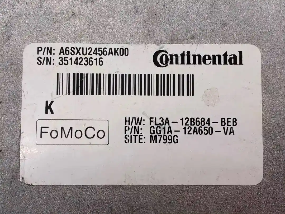 (Used) Engine Parts, ECM- Part Number: A6SXU2456AK00, Serial Number: 351423616, H/W: FL3A-12B684-BEB, P/N: GG1A- 12A650-VA, SITE: M799G, FU5T-14F262-AA, A2C53408266, 16221123552, 2 Rectangular Plug 198 pins in total Pins, 1: 103 Pins, 2: 95 Pins,