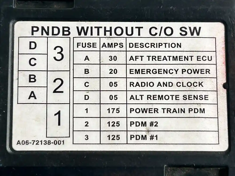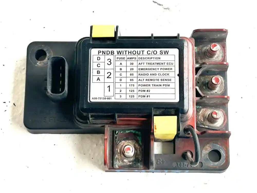(Used) Freightliner M2 112, PNDB, FUSE BOX- Serial Number: 0000195678, Part Number: A06-72138-001, Rectangular Plug with 4 Pin, Reference images for condition