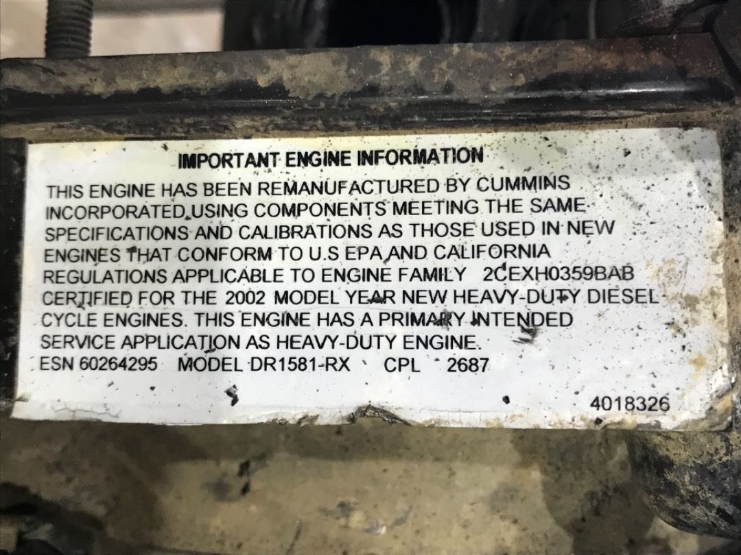 2000 Cummins ISB, (Reman) S/N-60264295 P/N-2CEXH0359BAB HP-185 CPL-2687 ECS-N/A Engine Model-ISB185-2300