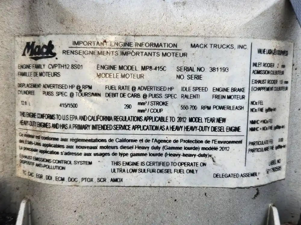 (Core) Engine does not Turn 360 Degrees Complete, 2012 Mack MP8, ENGINE ASSEMBLY