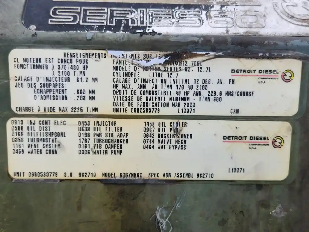 (Core) Engine does Turn 360 Degrees Complete, 2000 Detroit Series 60, ENGINE ASSEMBLY- Family Number: YDDXH12.7EGL, Displacement: 12.7L, Horsepower: 470, Serial Number: 06R0583779, Part Number: 6067MK60, Reference images for condition,