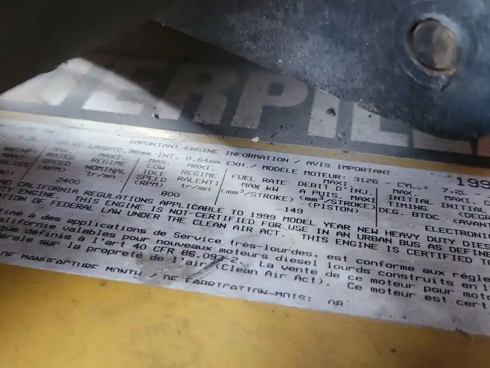 (Used) 1999 Caterpillar 3126, ENGINE ASSEMBLY- Family Number: XCPXH0442HSK, Displacement: 7.2L, Horsepower: 230, Serial Number: 8YL08205, ECS: EM, DI, TC, ECM, CAC,