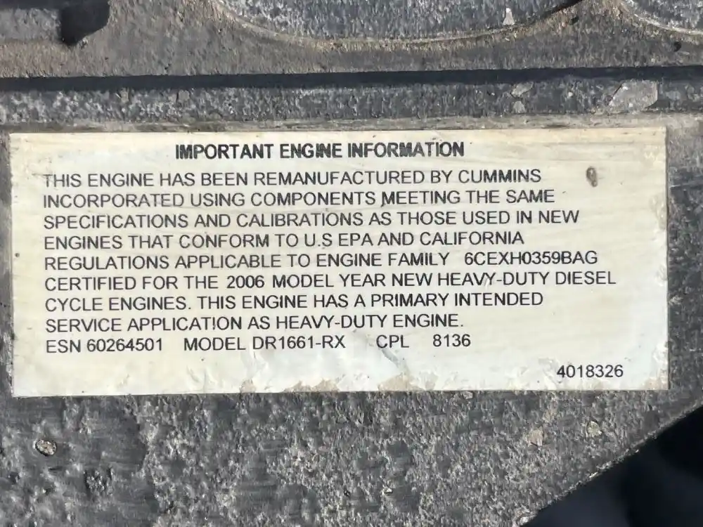 (Used) 2006 Cummins ISB, ENGINE ASSEMBLY- REMANUFACTURED- Family Number: 6CEXH00359BAG, Displacement: 5.9L, Horsepower: 215, Ar.No.CPL: 8136, Serial Number: 60264501, Reference images for condition, ,