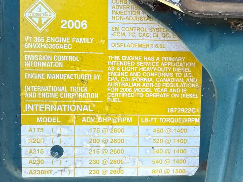 (Used) 2006 International VT365, ENGINE ASSEMBLY- Family Number: 6NVXH0365AEC, Displacement: 6.0L, Horsepower: 215, Serial Number: 1872922C1, E.C.S.: ECM, TC, CAC, DI, OC, EGR, Reference images for condition, ,