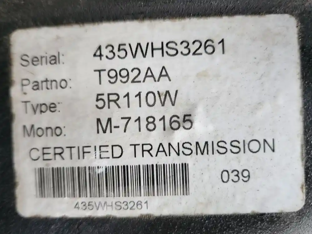 (Used) 2007 Ford (AT), TRANSMISSION ASSEMBLY- REMANUFACTURED!! Model: 5R110W, Serial Number: 435WHS3261, Part Number: T992AA, Engine: International VT275, Reference images for condition,
