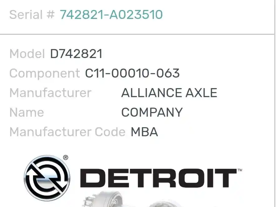 (Used) 2007 Freightliner M2 106, DIFFERENTIAL HOUSING ONLY- Part Number: C11-00010-063, Serial Number: 742821-A023510, Make: Detroit, Model: RS23-4, Ratio: 3.91, Capacity: 22,700 Lbs, Suspension: Air Suspension,