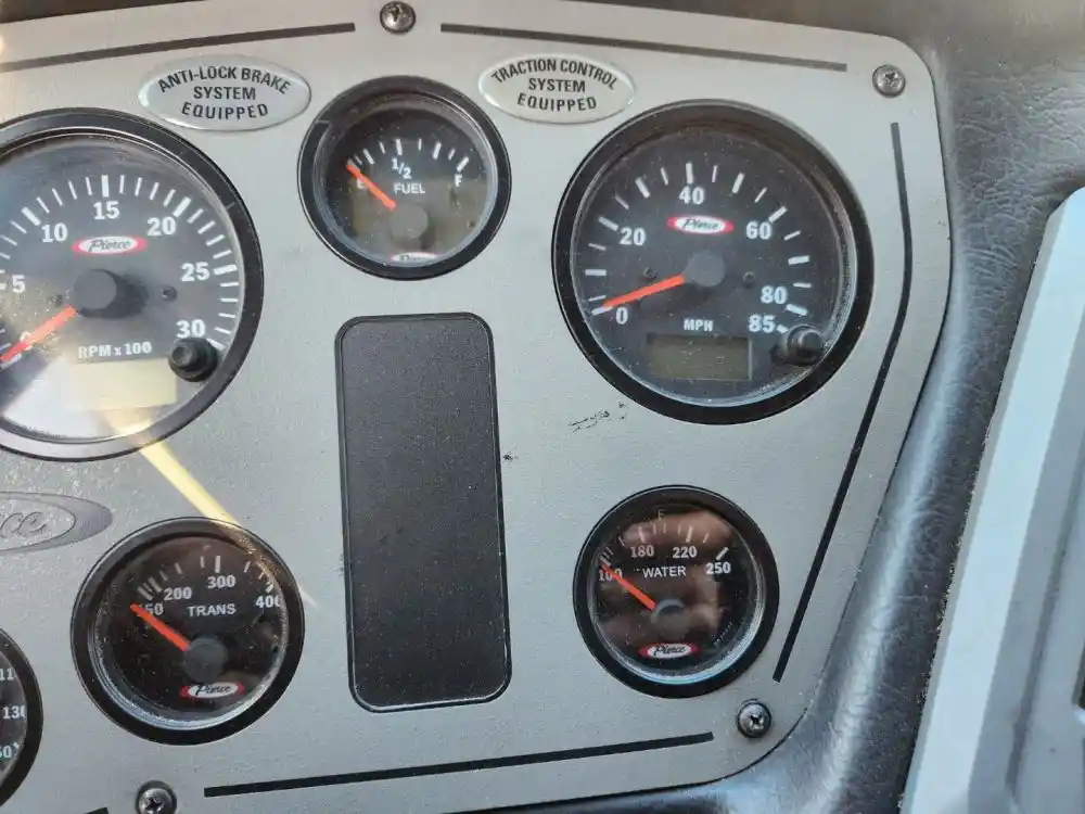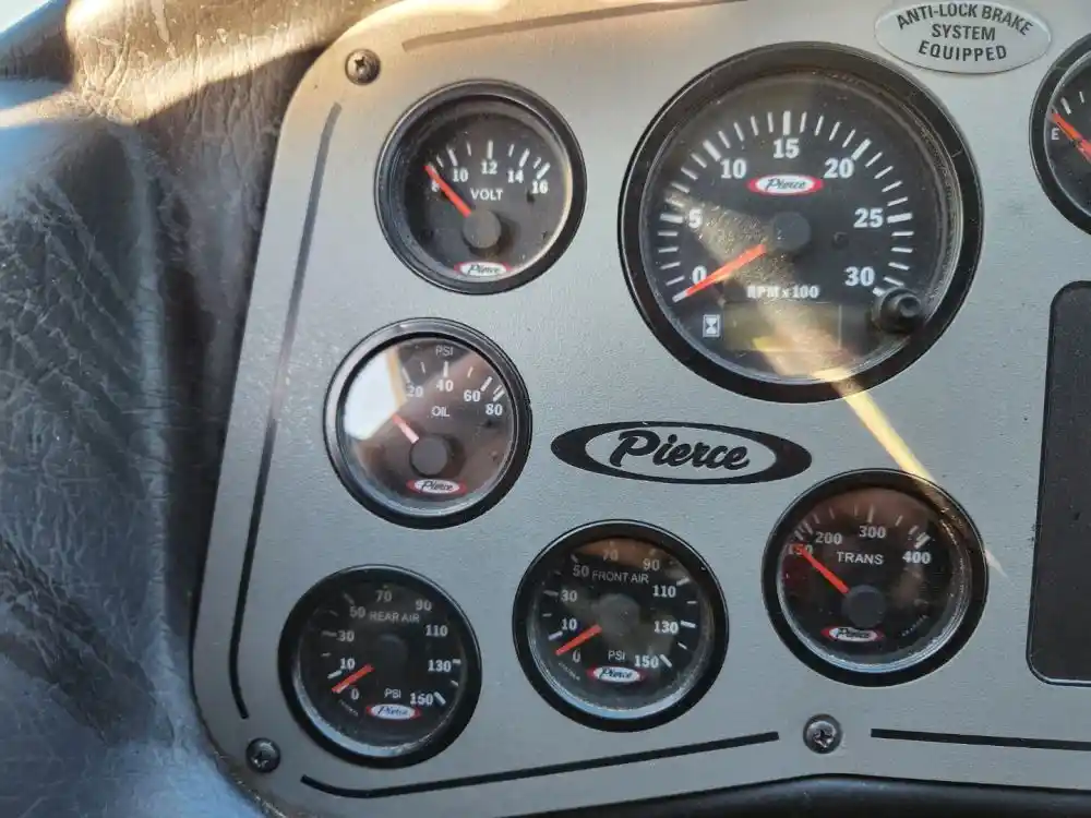 (Used) 2007 Pierce Dash, INSTRUMENT CLUSTER- Gauges: Battery Volts, Engine Oil Pressure, Brake Air Pressure (R), Brake Air Pressure (F), RPM, Transmission Temperature, Fuel Level, MPH, Water Temperature, Material: Aluminum with Plastic, Reference images for condition,