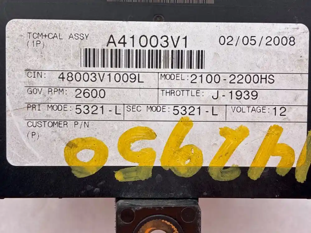 (Used) 2008 Allison 2100-2200HS , TRANSMISSION ECM- Part Number: 29545322, Serial Number: BK5322N173487T11, A41003V1, CIN: 48003V1009L, GOV RPM: 2600, THROTTLE: J--1939, PRI MODE: 5321-L, SEC MODE: 5321-L, 12V, E11, 022849, 10 R 022849, Supplier Number: ATA4101, MODEL: A41, Plug Pins: 80 Pins Plug Rectangular, Reference images for condition. ,