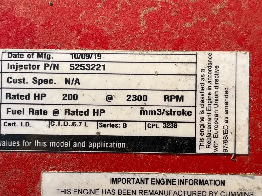 (Used) 2008 Cummins ISB 6.7, ENGINE ASSEMBLY- REMANUFACTURED !!! Family Number: 9CEXH0408BAF, Displacement: 6.7L, Horsepower: 220, Ar.No./CPL: 3238, Serial Number: 60703621, Part Number: C01-00130-256, E.C.S: N/A, Reference images for condition,