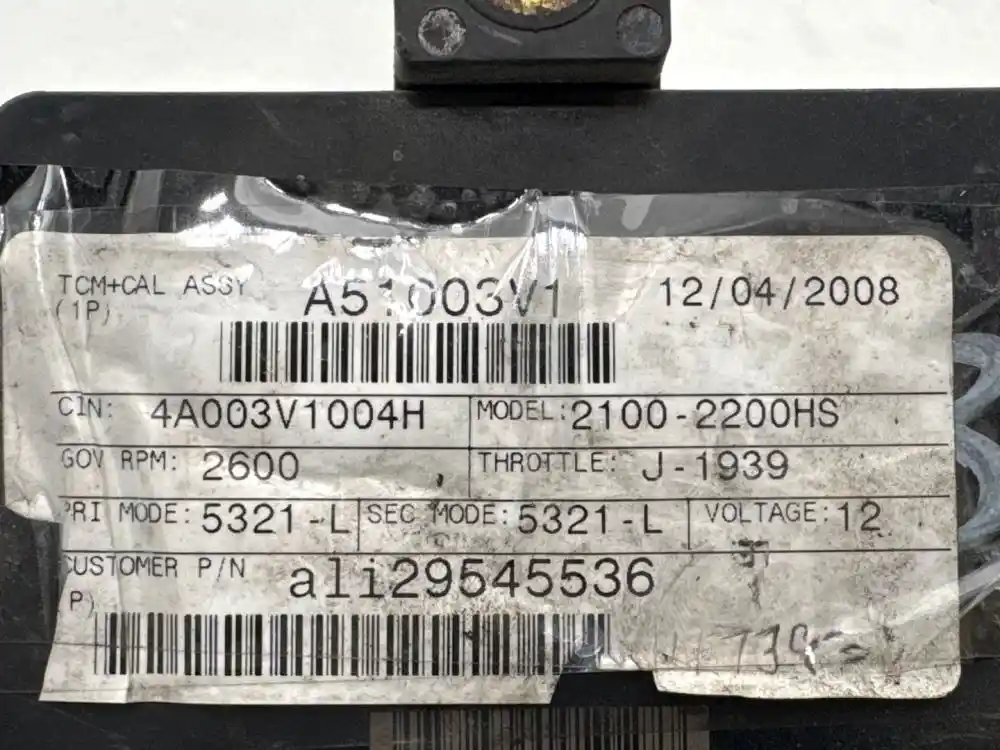 (Used) 2009 Allison 2200HS (AT), TRANSMISSION ECM- Part Number: 29545536, Serial Number:BK5536N18275003C , 12 Volts A51003V1, CIN: 4A003V1004H, GOV RPM: 2600 THROTTLE: J-1939, PRI MODE: 5321- L, SEC MODE: 5321- L, E11, 032849, 10R022849, Supplier Part Number: ATA5101, Base Part Number: 29545536, Plug Pins: 80 Pins Plug Rectangular, Reference images for condition. ,
