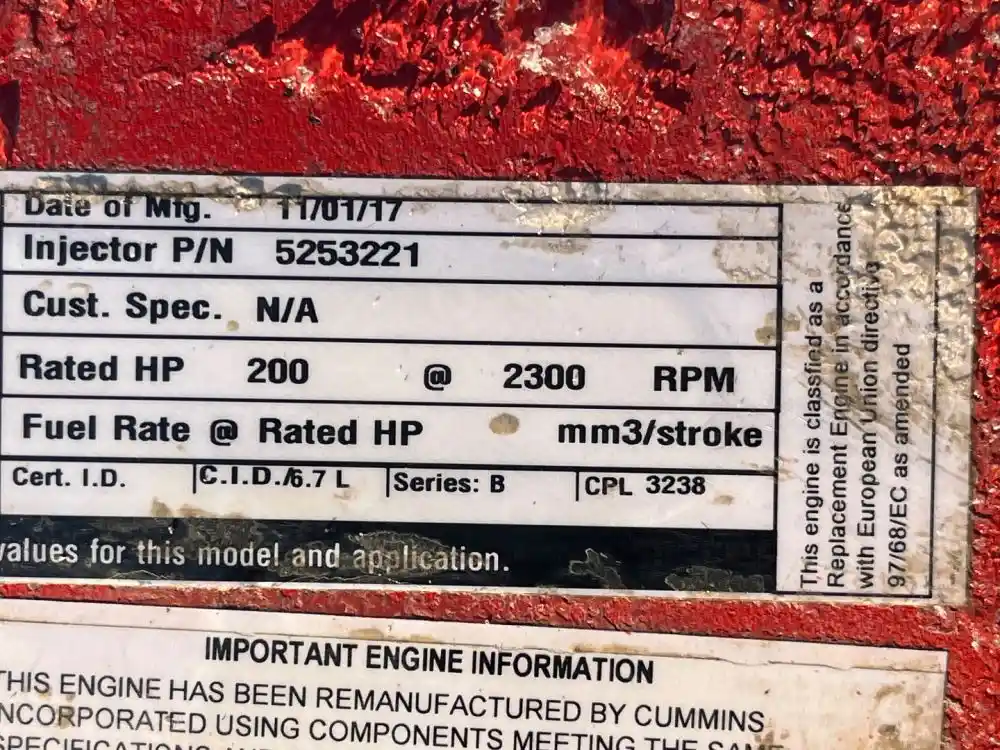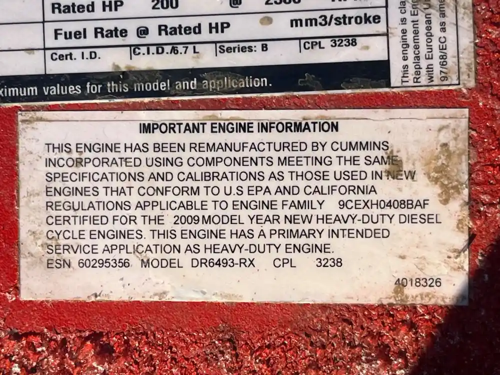 (Used) 2009 Cummins ISB, ENGINE ASSEMBLY- REMANUFACTURED- Family Number: 9CEXH0408BAF, Displacement: 6.7L, Horsepower: 200, Ar.No.CPL: 3238, Serial Number: 60295356, Reference images for condition, ,