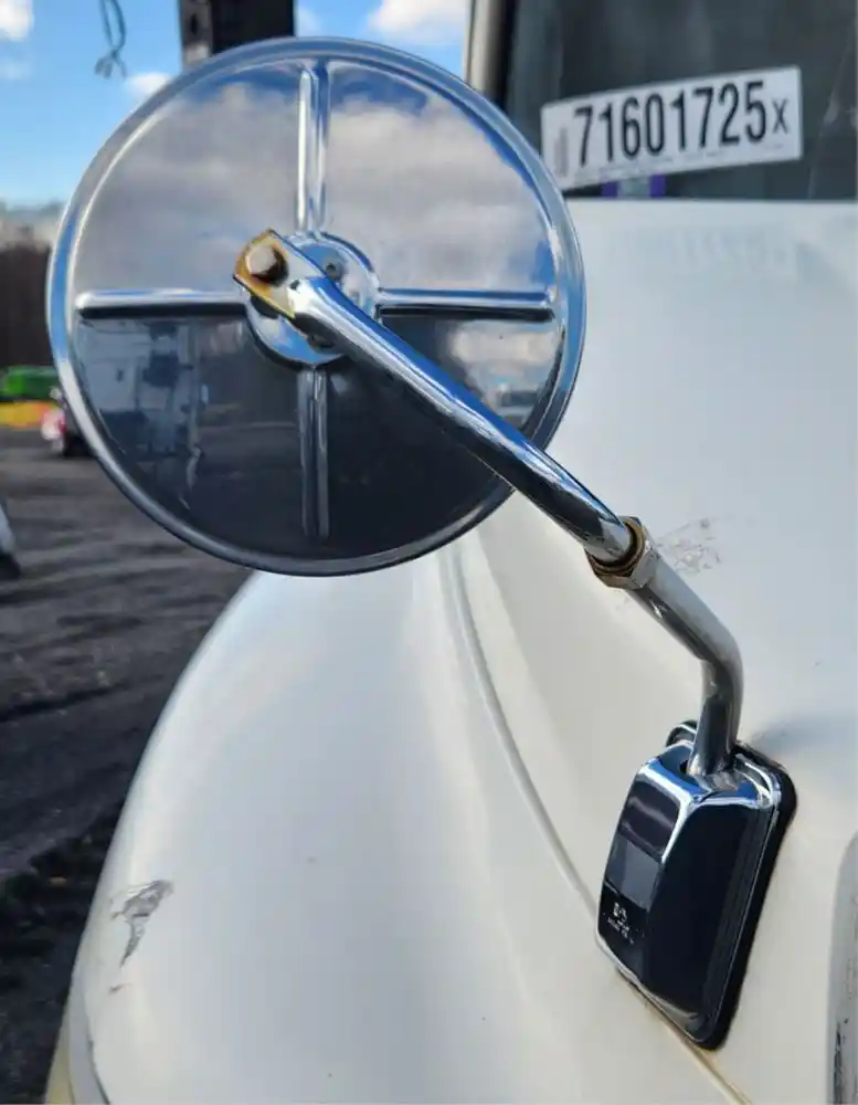 (Used) 2009 Hino 268, MIRROR- Side: Passenger Right Side, Color: Chrome, Material: Aluminum, Type: Manual, Mounts: Hood, Reference images for condition,