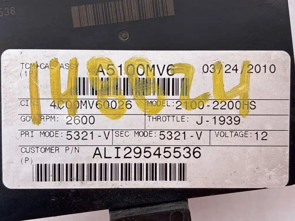 (Used) 2010 Allison 2100-2200HS, TRANSMISSION ECM- Part Number: 29545536, Serial Number: BK5536N10041033B, A5100MV6, CIN: 4C00MV60026, GOV RPM: 2600, THROTTLE: J-1939, PRI MODE: 5321-V, SEC MODE: 5321-V, 12 Volts, Customer P/N: AL129545536, E11, 032849, 10R022849, Supplier Number: ATA5101, MODEL: A51, Plug Pins: 80 Pins Plug Rectangular, Reference images for condition. ,