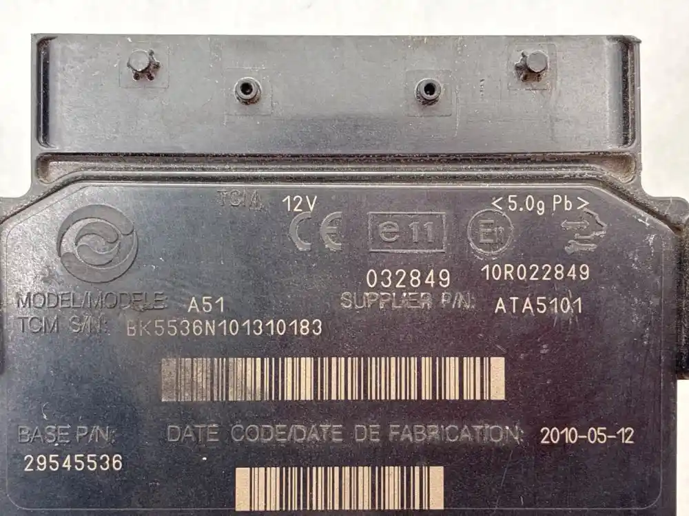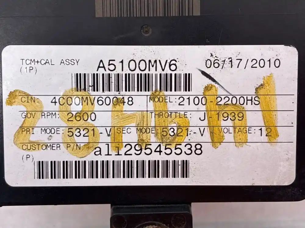 (Used) 2010 Allison 2100-2200HS, TRANSMISSION ECM- Part Number: 29545536, Serial Number: BK5536N101310183, A5100MV6, CIN: 4C00MV60048, GOV RPM: 2600, THROTTLE: J-1939, PRI MODE: 5321-V, SEC MODE: 5321-V, 12 Volts, Customer P/N: ali29545538, E11, 032849, 10R022849, Supplier Number: ATA5101, MODEL: A51, Plug Pins: 80 Pins Plug Rectangular, Reference images for condition. ,