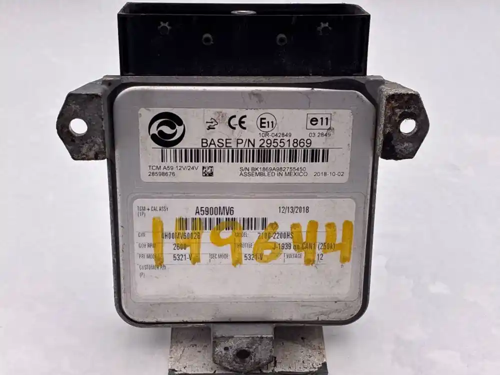 (Used) 2010 Allison 2200HS, TRANSMISSION ECM- Part Number: 29551869, Serial Number: BK1869A982755450, TCM Model: A59, E11 10R-042849, 03 2849 12V\24V 28598676, CIN: 4H-00MV6-002 B, A5900MV6, Model: 2100-2200HS, Gov RPM: 2600, Throttle: J-1939 on CAN1 (250k), PRI MODE: 5321-V, SEC MODE: 5321-V, 1 Rectangular Plug with 80 Pins, Reference images for condition,