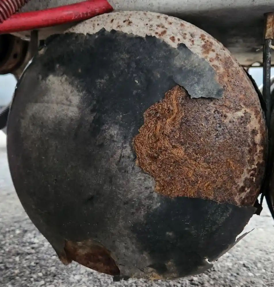 (Used) 2011 International PROSTAR, AIR TANK (2)- Side: Driver Left Side, Location: Under The Battery Box, Material: Steel, Dimensions: L=32", D=11", Front Ports: 0, Rear Ports: 4, Reference images for condition,