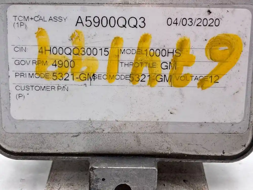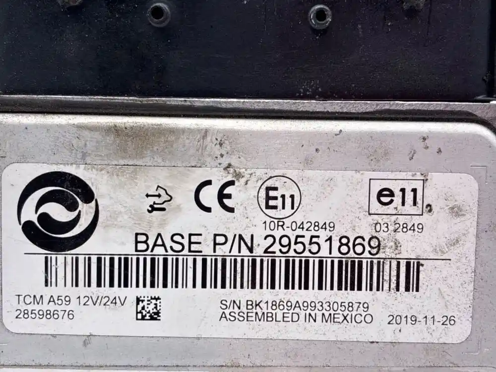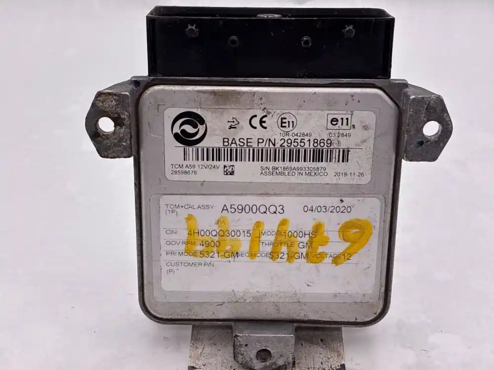 (Used) 2012 Allison 1000HS, TRANSMISSION ECM- Part Number: 28598676, Serial Number: BK1869A993305879, TCM Model: A59, E11 10R-042849, 03 2849 12V\24V 28598676, CIN: 4H00QQ30015, A5900QQ3, Model: 1000HS, Gov RPM: 4900, Throttle: GM, PRI MODE: 5321-GM, SEC MODE: 5321-GM, 1 Rectangular Plug with 80 Pins, Reference images for condition,