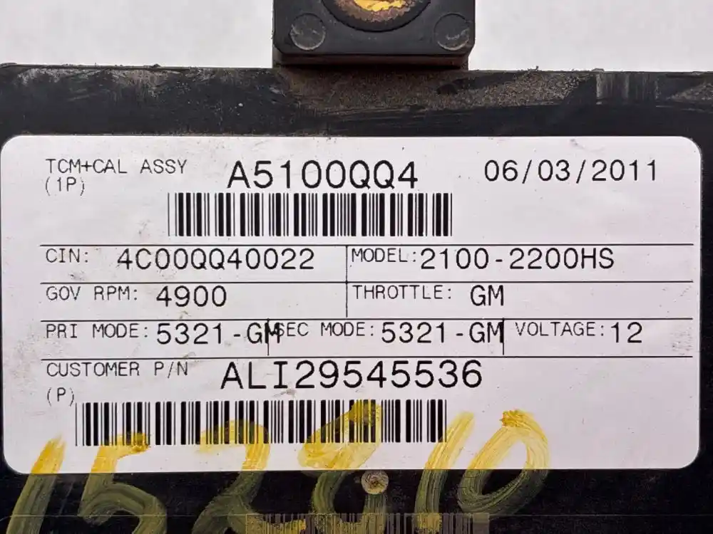 (Used) 2012 Allison 2000HS , TRANSMISSION ECM- Part Number: 29545536, Serial Number: BK5536N1113104EC, A5100QQ4, CIN: 4C00QQ40022, GOV RPM: 4900, THROTTLE: GM, PRI MODE: 5321-GM, SEC MODE: 5321-GM, Customer P/N: ALI29545536, 12V, E11, 032849, 10R022849, Supplier Number: ATA5101, MODEL: A51, Plug Pins: 80 Pins Plug Rectangular, Reference images for condition. ,