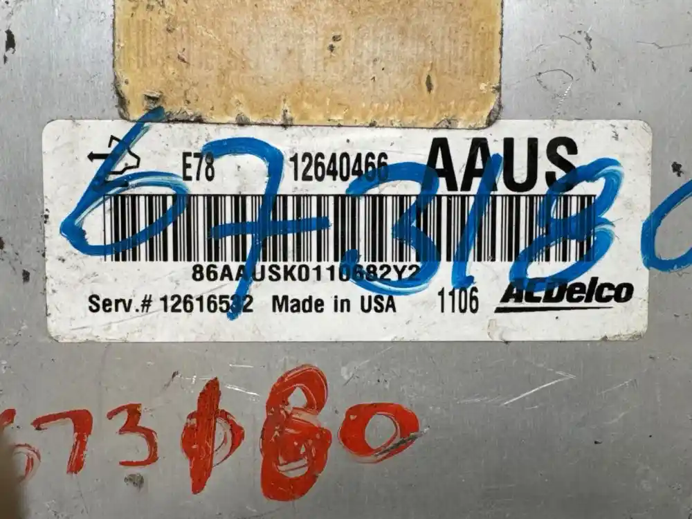 (Used) 2012 GM/Chev (HD) 6.0L, ENGINE ECM- Part Number: 12640466 Serial Number: 86AAUSK011682Y2, Serv. Number: 12616532, E78, 12640466 AAUS, 1106, J1 Rectangular Plug with 65 Pins, J2 Rectangular Plug with 73 Pins, J3 Rectangular Plug with 55 Pins, Reference images for condition. ,